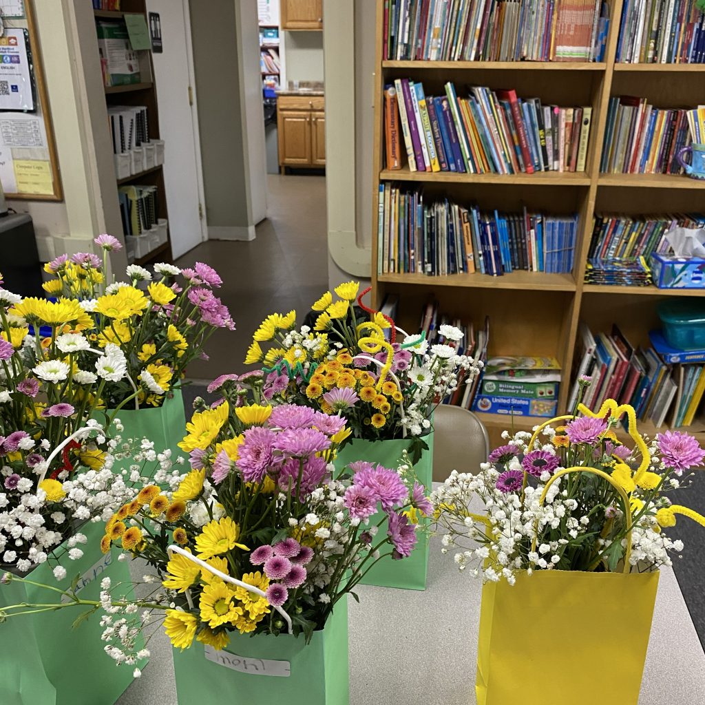 These lovely arrangements were created by children at the Hillcrest Area Neighborhood Outreach Center on Earth Day as gifts for their mothers. Floral Design members Mel Donoghue, Bela Mandavilli, Mary Mulcahy, and Nancy Lemega-Watt, together with Tanya Guadalupe of Junior Gardeners, guided the activity and enjoyed it as much as the children